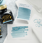En los blogs de fanáticos, tinta Diamine está puntuada con la máxima nota y la describen como una tinta de secado rápido, no resistente al agua. Saturación y flujo alto.
