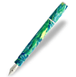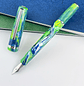 Esta pluma estilográfica de bolsillo de resina azul nacarada y verde es la Esterbrook JR, abreviatura de "J Reborn". Hecho de resina DiamondCast, viene con adornos cromados y una punta plateada de acero inoxidable JoWo #5. Una versión moderna de un clásico vintage. Se llena mediante un cartucho/convertidor internacional estándar (incluido).
