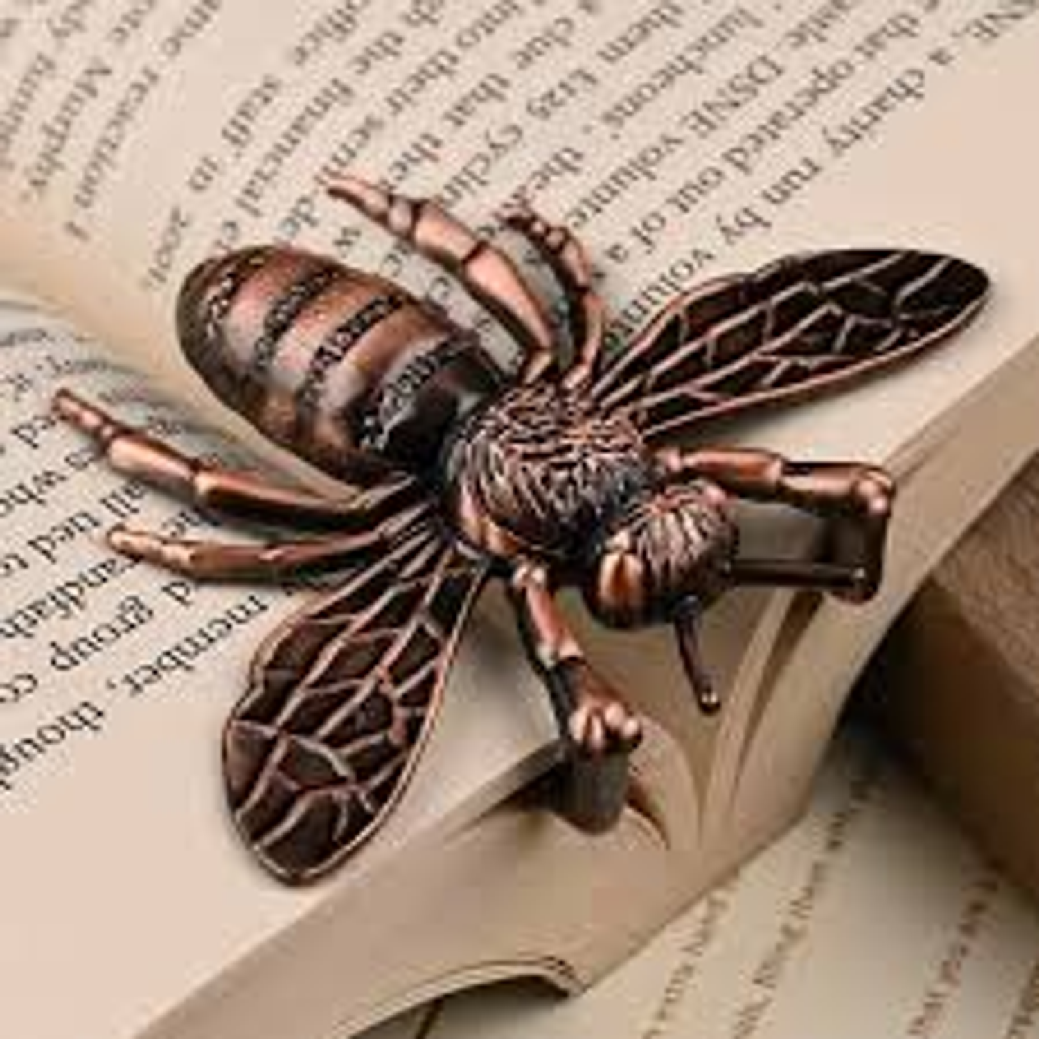 Nuestra pequeña abeja de bronce, ocupada, es una mano extra para sostener sus páginas mientras escribe sus diarios, llenando ellos con sus pensamientos y la elaboración de su historia. Las abejas son pensadores increíbles con una asombrosa capacidad para aprender, hacer un trabajo significativo y formar memorias complejas.