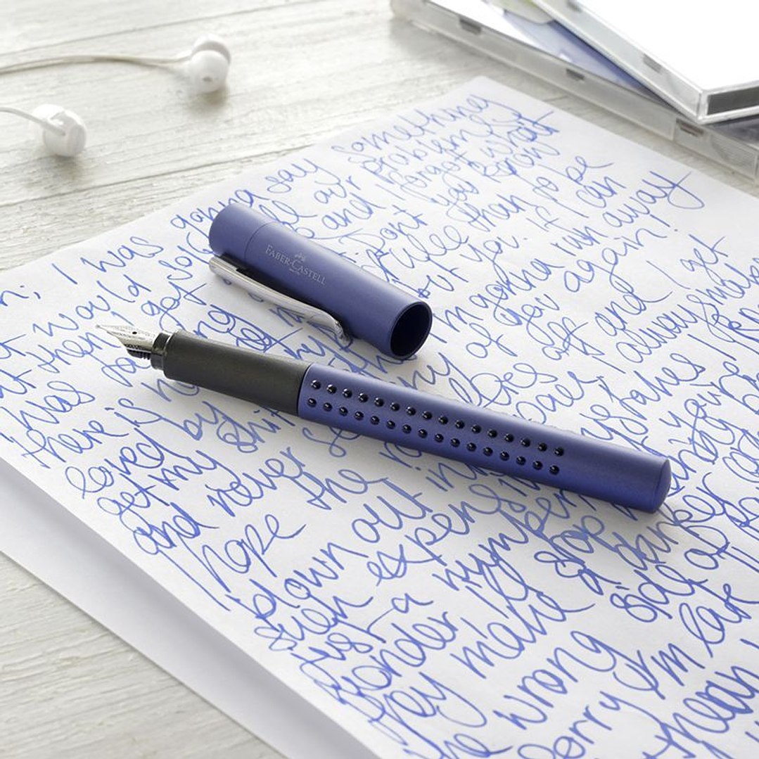 Presentada en caja de cartón especial para grip de Faber Castell. Incluye un cartucho universal . Convertidor compatible puedes comprarlo por separado en accesorios.