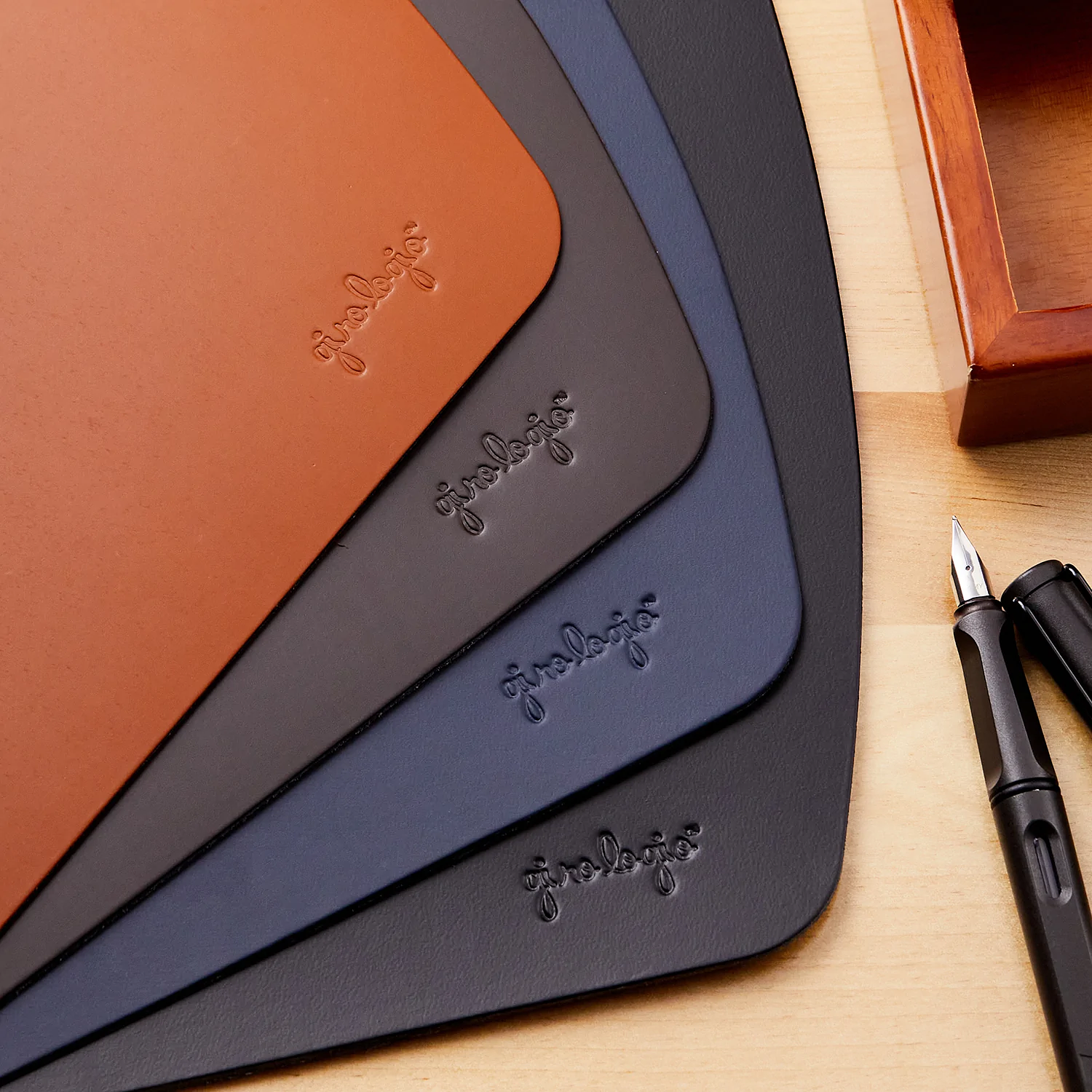 ¡Mejora tu escritorio con un tapete de escritura Girologio! superficie ideal para escribir. Una exquisita carpeta de escritorio de 330 mm x 450 mm, fabricado con restos de cuero reconstituido convertido en una superficie perfectamente lisa y ligeramente blanda para mejorar el rendimiento de su instrumento de escritura