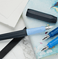 Agregue un toque caligráfico a su escritura con el juego de caligrafía Kaweco Perkeo. El juego consta de un cuerpo azul oscuro con 3 unidades de plumín separadas con un ancho de línea de 1,1, 1,5 y 1,9 mm. Si desea comenzar a practicar caligrafía, notará que la punta de 1,1 mm proporciona una línea ancha en el trazo descendente y una línea estrecha en el trazo lateral. Si cambia la unidad de punta a la punta de 1,5 o 1,9 mm, el efecto será aún más espectacular.