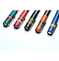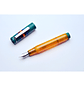 Equipada con plumín de manufactura alemana de excelente eficiencia y suavidad. Opus 88 Fantasia viene en 5 colores diferentes, hecha de resina acrílica semi transparente y tapa completamente de ebonita con diseños geométricos propios de la cultura pop. Como ya dijimos es una pluma de bolsillo, que permite postear la tapa a través de un hilo que no interfiere con el especial sistema de control de flujo de tinta . Veamos las medidas: