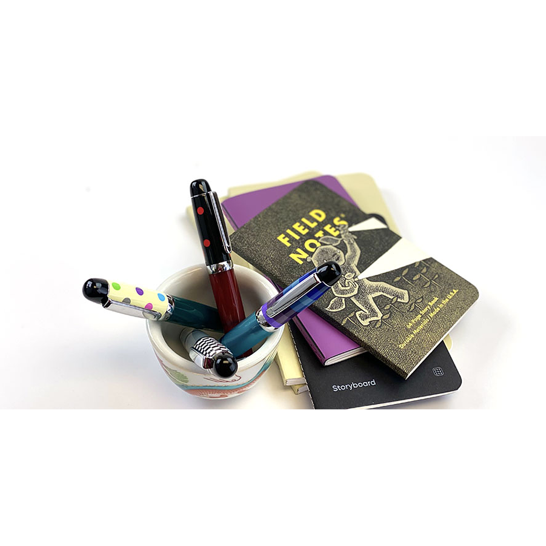 La pluma estilográfica Opus 88 Mini Pocket es una pluma con cuentagotas con un agitador de pistón incorporado. El cuerpo del bolígrafo demostrador complementa la tapa impresa. El diseño está enmarcado en negro sólido en la corona de la tapa y en el extremo opuesto del barril y tiene un acabado cromado. La silueta atrevida y la portabilidad absoluta de la pluma estilográfica Opus 88 Mini Pocket significan que tiene una pieza de declaración elegante que puede llevar a donde quiera que vaya.
