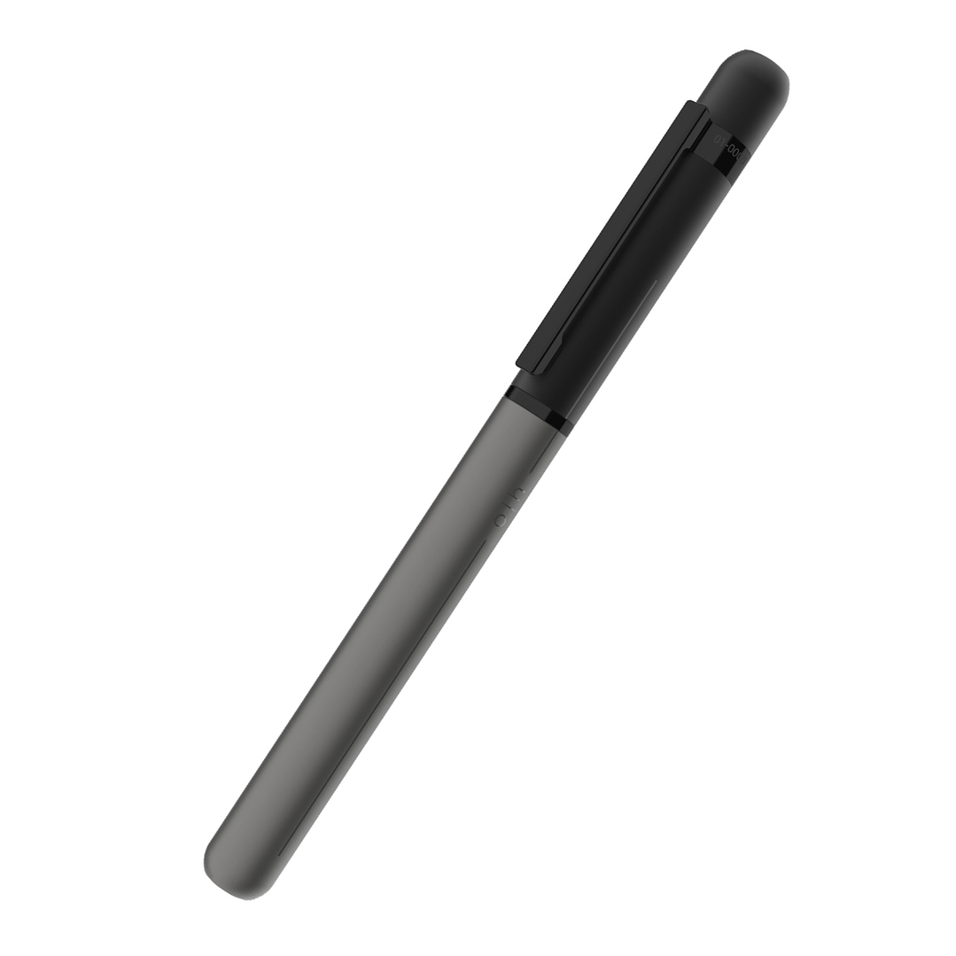 De forma perfecta, con una distribución de peso equilibrada, la pluma D03 DARK GREY se adapta perfectamente a la mano. El cuerpo de la pluma está revestido en rutenio de alta calidad y la tapa está pintada en negro mate. Tiene líneas decorativas impresas o grabadas con láser delicadamente que toman el color de la tapa o el cuerpo, dándole al instrumento un aspecto sencillo y elegante. El clip y plumín de acero son negros recubiertos en PVD (técnica que le otorga a la superficie mayor duración y resistencia). La tapa se cierra por presión al cuerpo.