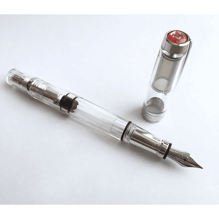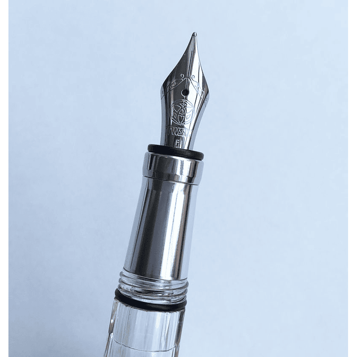 Diamond 580 AL Silver viene embalada en la clásica caja de cartón con el sello TWSBI y con una elegante y moderna caja de plástico que expone de forma espectacular una pluma espectacular.